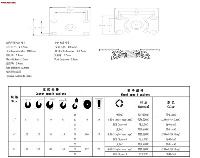Колесо вариант: PP, нейлон, PU, TPR колеса